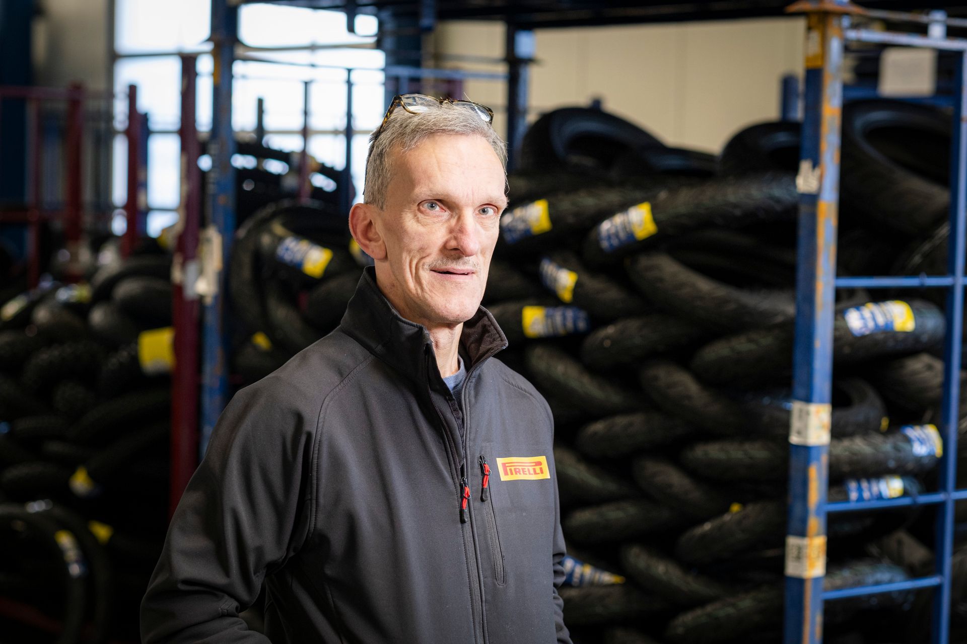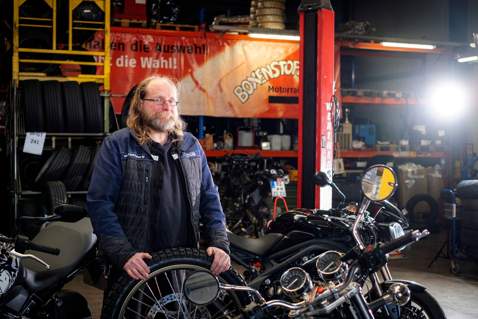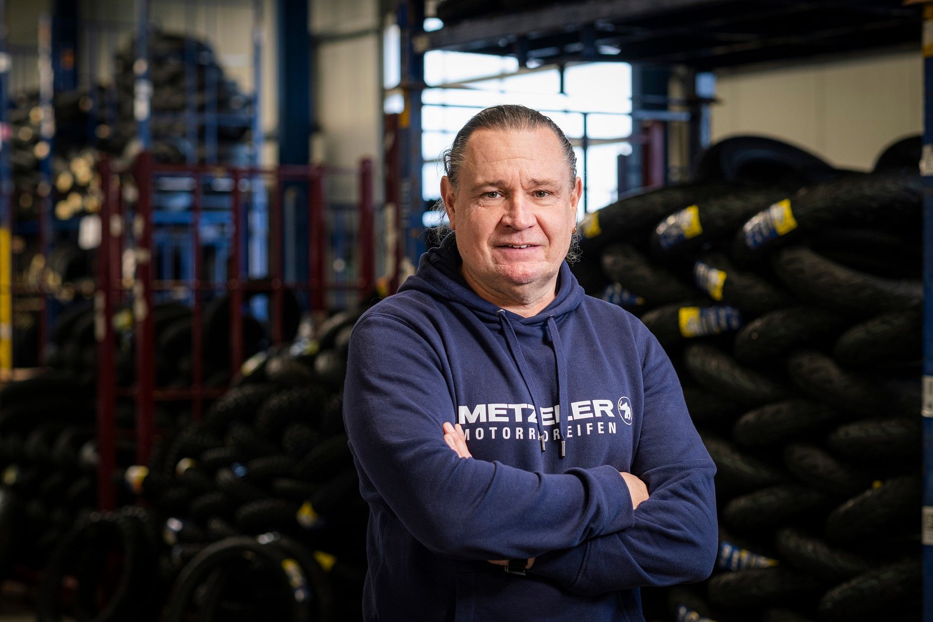 – in den frühen 90 ´er Jahre hat Frank die Firma mitbegründet. Aus Leidenschaft zum Motorrad hat er seine „ Karriere „ als Lehrer an den Nagel gehängt und ist seit über 30 Jahren durchgehend bei Boxenstopp im Motorradreifengeschäft.